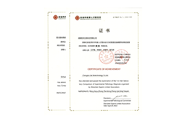 集團已通過國家高新技術企業認證,已獲得CMA實驗室資質認定、已入庫國家科技型中小企業,實驗中心已通過環評驗收、已取得醫療機構執業許可證、擁有實驗動物使用許可證及四川省可威染人類病原微生物二級生物安全實驗室備案登記書·2017、2019、2020、2022年病理實驗中心均以優秀成績獲得毒性病理學、實驗病理學室間比對證書已獲得實用新型專利9項并與國內多個知名院校,研究所等共建產學聯合實驗室、大學實習基地、醫院聯合研究平臺等。