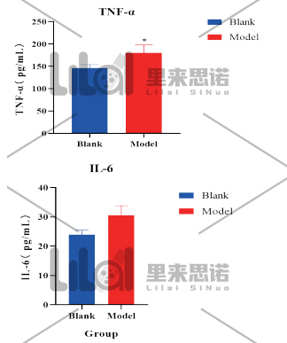 血清生化指標:試驗終點,采集小鼠血清進行炎癥因子IL-6,TNF-α的檢測。