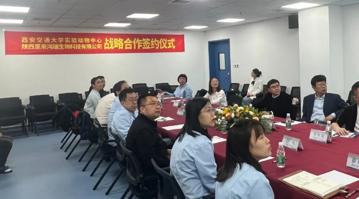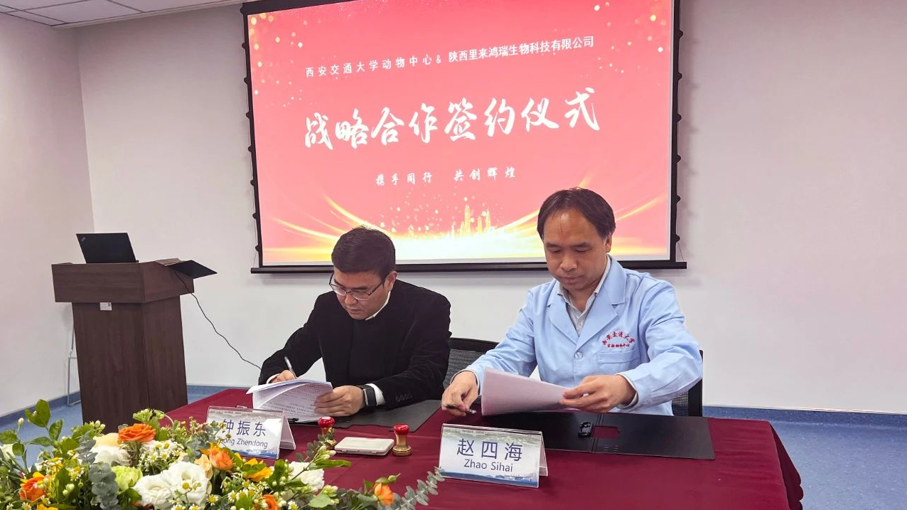 2024年4月11日,西安交通大學實驗動物中心與陜西里來鴻瑞生物科技有限公司在西安交通大學實驗動物中心會議室共同舉行了戰略合作簽約儀式。此次合作標志著雙方在生物醫藥領域將展開深入的科研合作與技術交流,共同推動實驗動物技術的發展及其在基礎研究與醫藥研發中的應用。