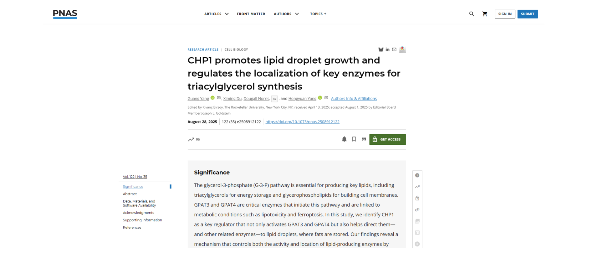 細胞脂肪儲存“調度員”CHP1蛋白現身,開辟脂代謝研究新方向