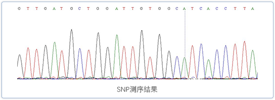 在所有SNP的檢測方法中,對待檢測片段進行直接擴增、測序是最為準確的方法,也是SNP分析的金標準。純合型SNP位點的測序峰為單一峰型,而雜合型SNP位點的測序峰為套峰,因而很容易將其區分開來。